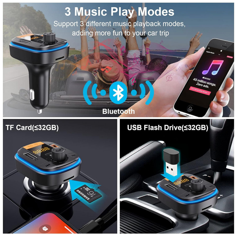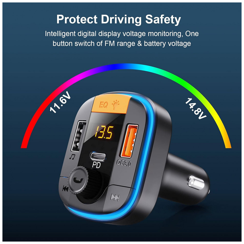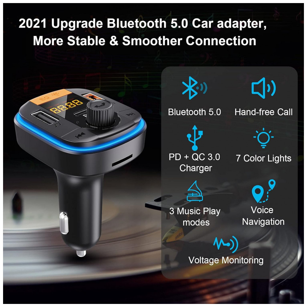 O adaptador de carro Bluetooth é conveniente para você acompanhar o estado de saúde da bateria do seu carro e prevenir vários problemas e proteger a segurança de sua direção com eficácia Retroiluminação LED de 7 cores e serviço quente Com o transmissor FM Bluetooth para carro, você pode reproduzir música através de Bluetooth, disco U e cartão TF formato de música 32GB, MP3 , FLAC , WMA , APE.