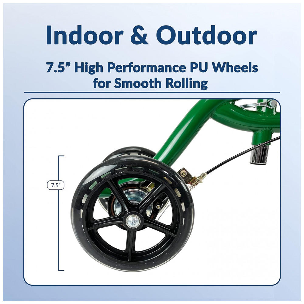 Andador 4 Rodas com Cesta e Apoio para Joelho Ideal para Lesões nos Pés, KNEEROVER KNEESCOOTER, Verde