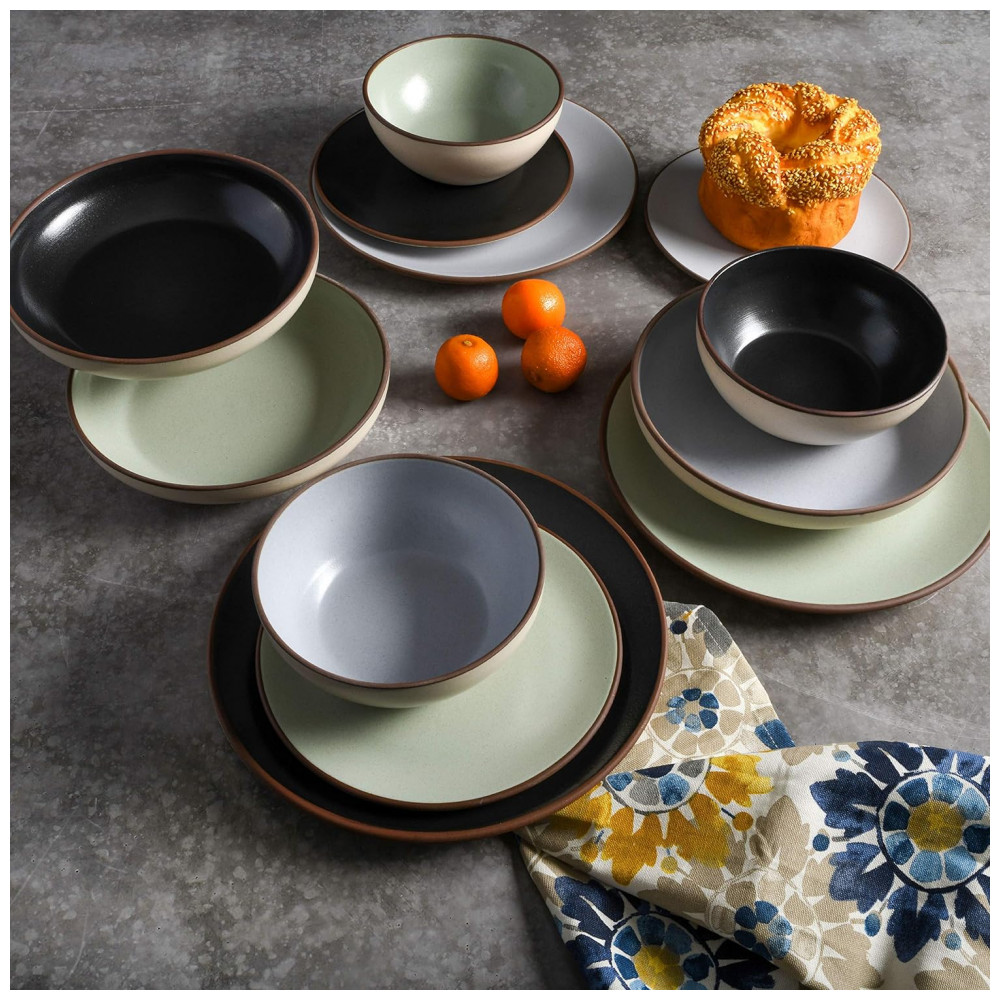 Aparelho de Jantar com 24 Peças de Cerâmica Ideal ara 6 Pessoas, vancasso Verde