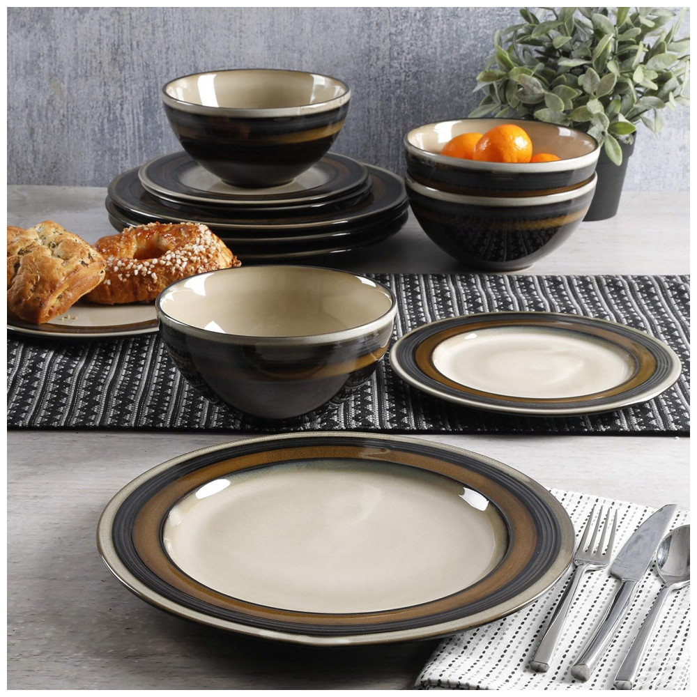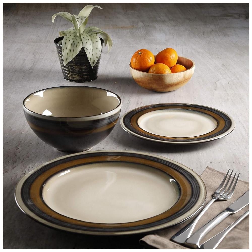 Aparelho de Jantar com 12 Peças em Cerâmica, Gibson Elite Everston, Marrom e Creme