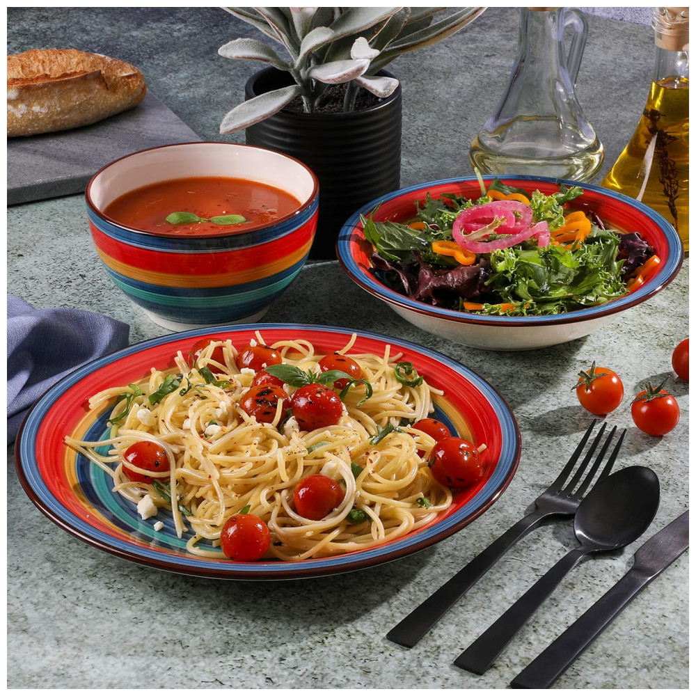 Aparelho de Jantar com 18 Peças Incluindo Pratos de Sobremesa, Fundo e Raso, Vancasso Arco, Colorido