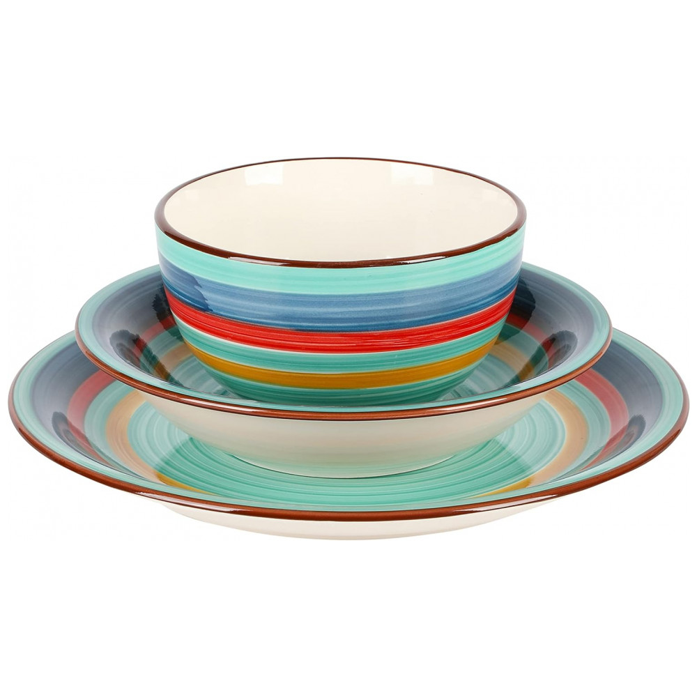 Aparelho de Jantar com 12 Peças em Cerâmica Pintadas á Mão, Gibson Home Rainbow, Verde: O QUE ESTÁ NA CAIXA serviço para 4, que inclui 4 dos seguintes itens Pratos para jantar de 25 centímetros, tigelas de sopa de 20 centímetros e Tigelas de 12 centímetros.