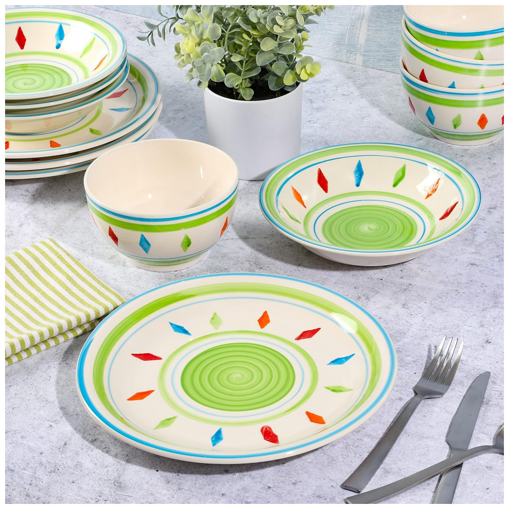 Aparelho de Jantar com 12 Peças em Cerâmica Pintadas a Mão Serve 4 Pessoas, Gibson Home Heidy, Verde