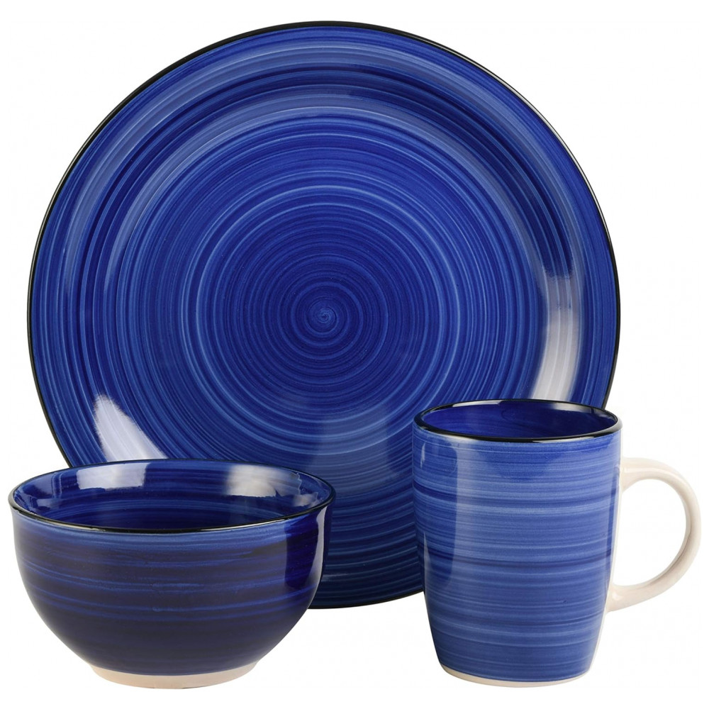 Aparelho de Jantar com 12 Peças em Cerâmica Serve 4 Pessoas, Gibson Home Rockaway, Azul