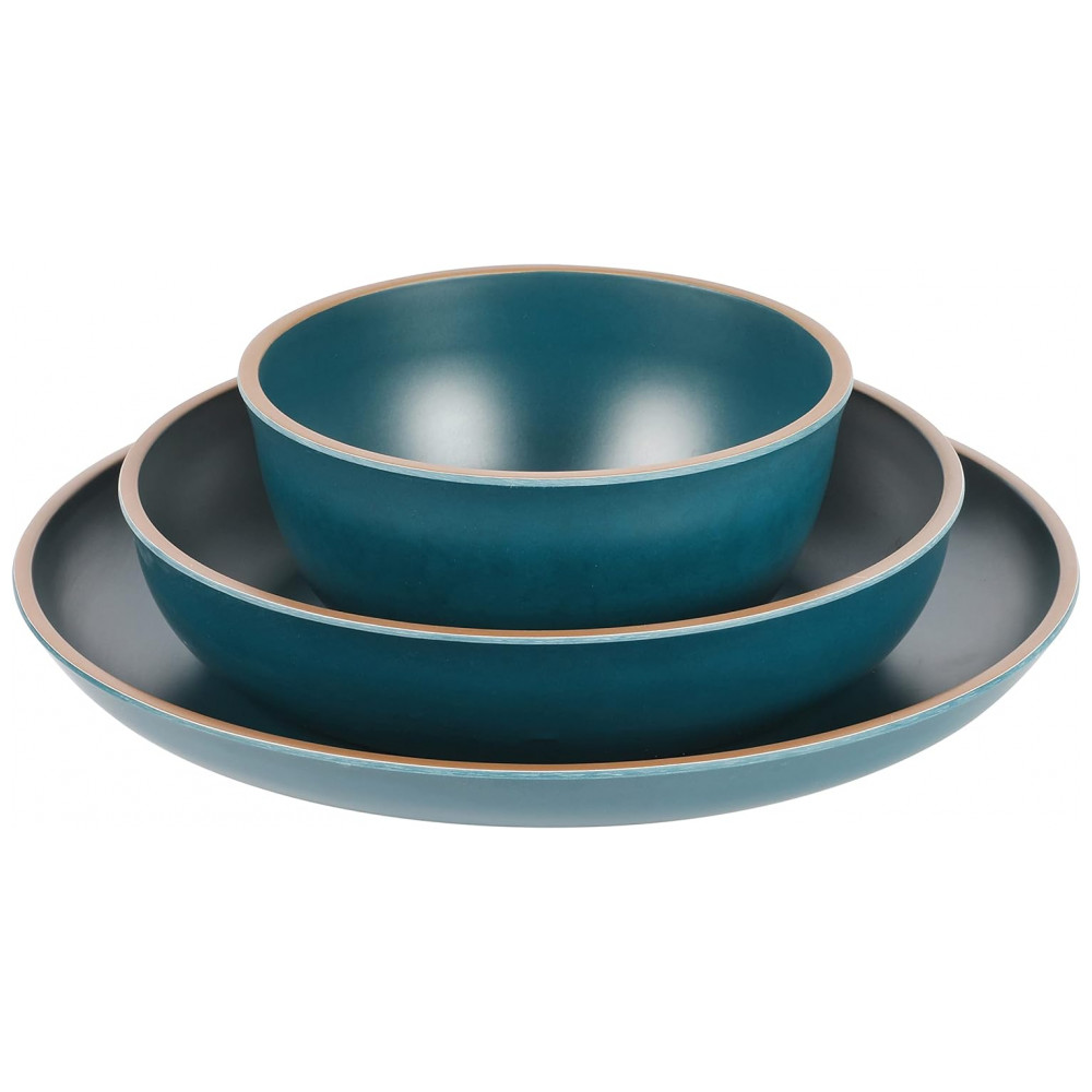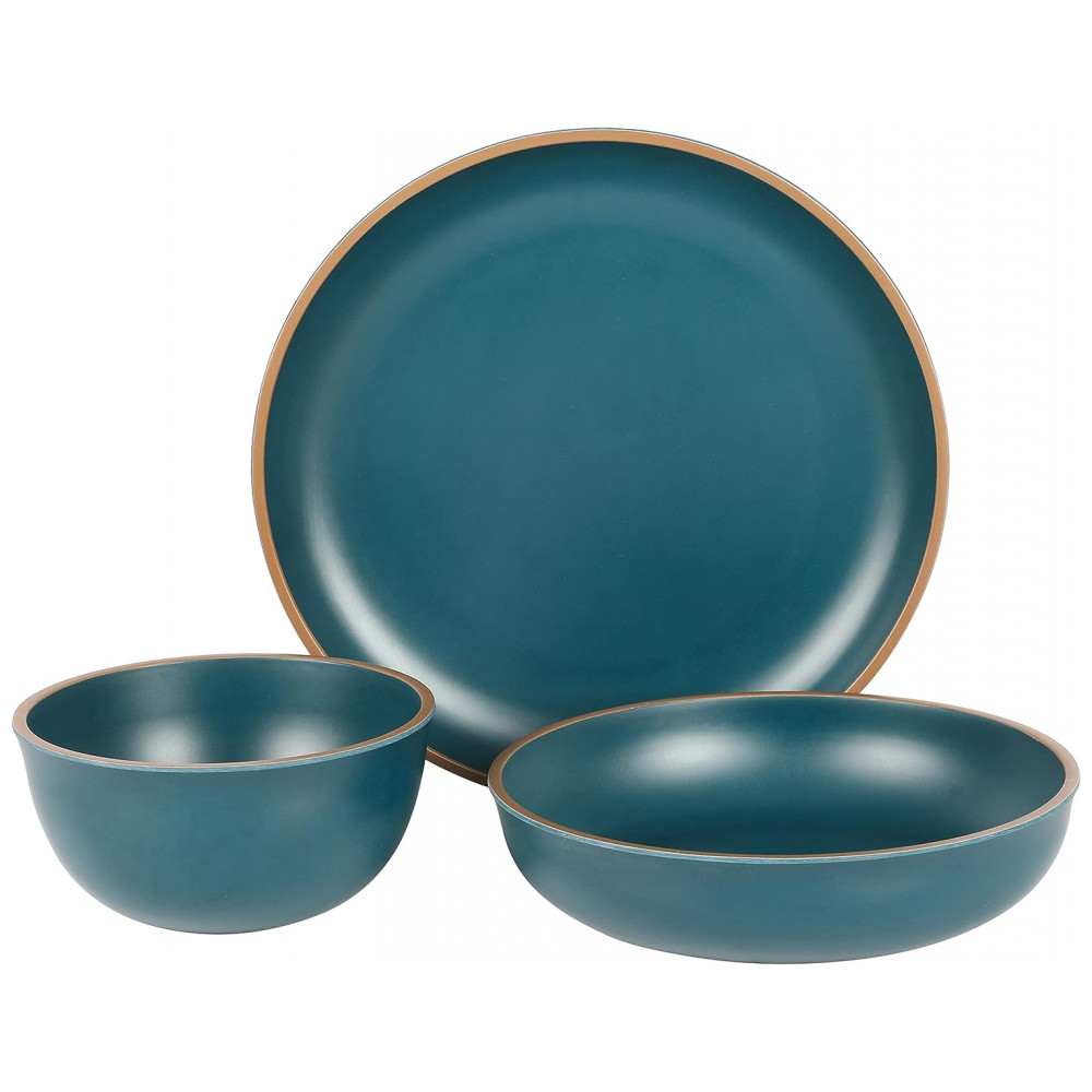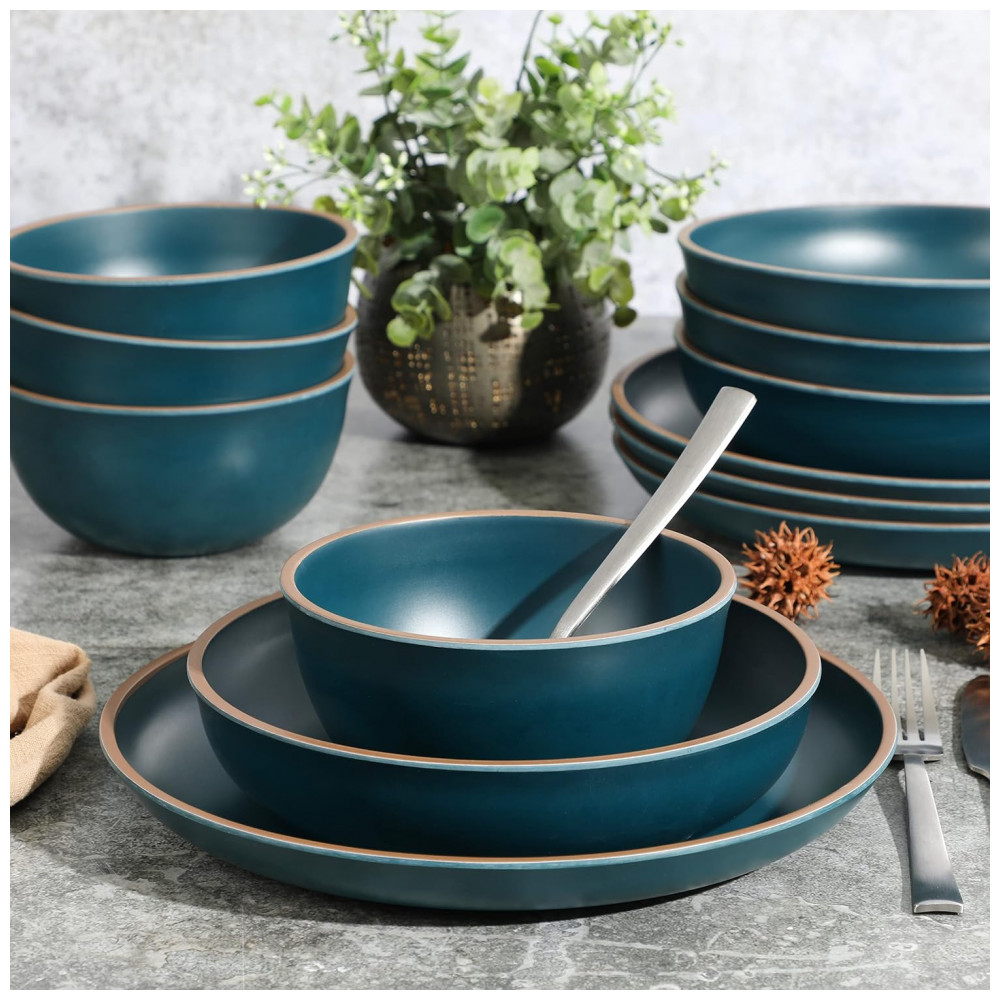 Aparelho de Jantar com 12 Peças em Melamina Gibson Home Rockabye, Azul Petróleo Fosco