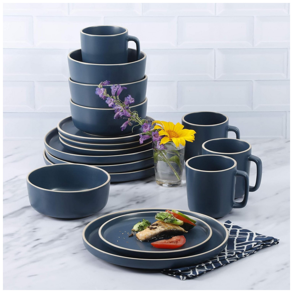 Aparelho de Jantar com 16 Peças em Cerâmica, Serve 4 Pessoas, Gibson Elite Soho, Azul Petróleo
