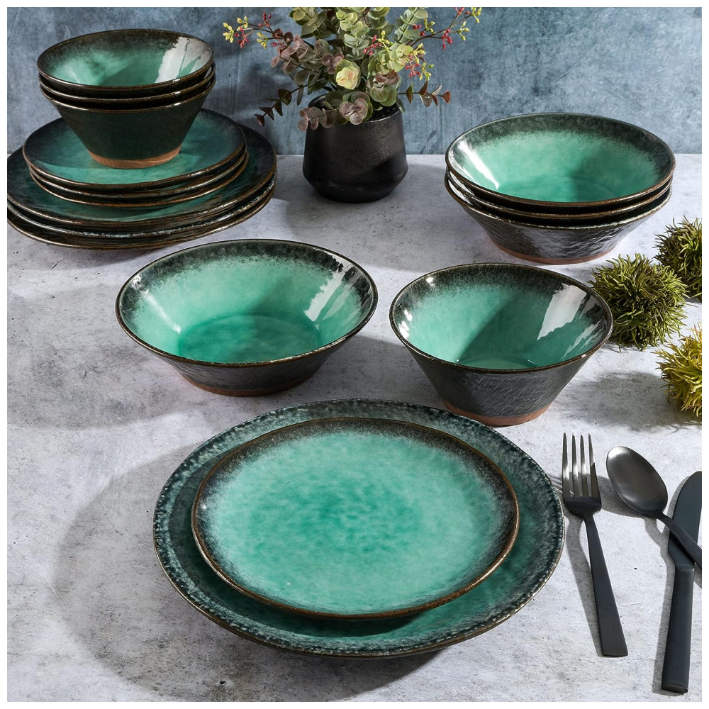 Aparelho de Jantar com 24 Peças de Cerâmica Ideal ara 6 Pessoas, vancasso Verde