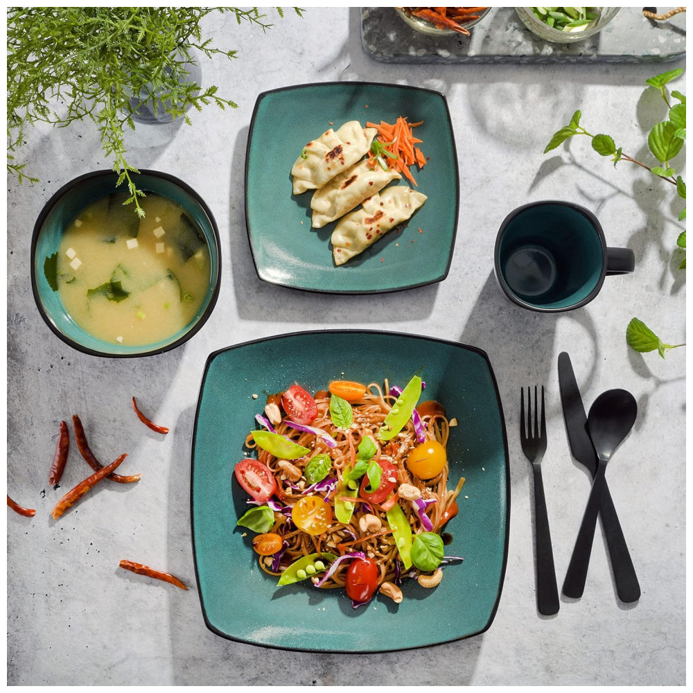 Aparelho de Jantar com 16 Peças em Cerâmica, Serve 4 Pessoas, Gibson Elite Soho, Preto e Verde