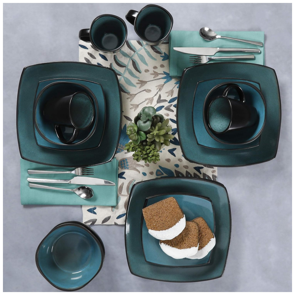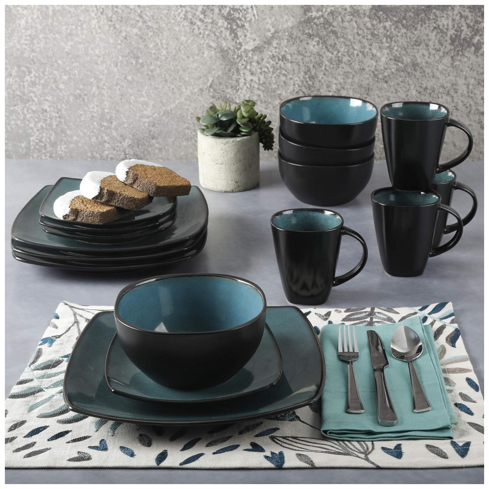 Aparelho de Jantar com 16 Peças em Cerâmica, Serve 4 Pessoas, Gibson Elite Soho, Azul Petróleo
