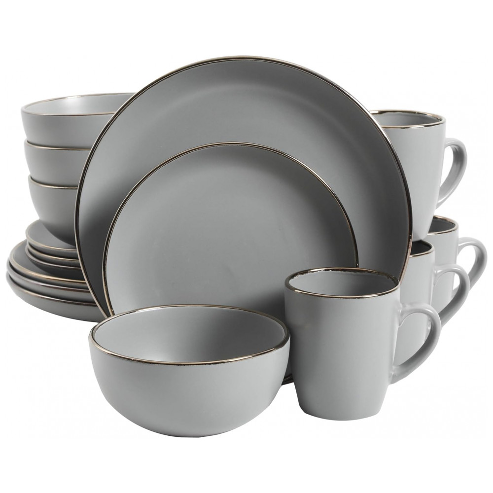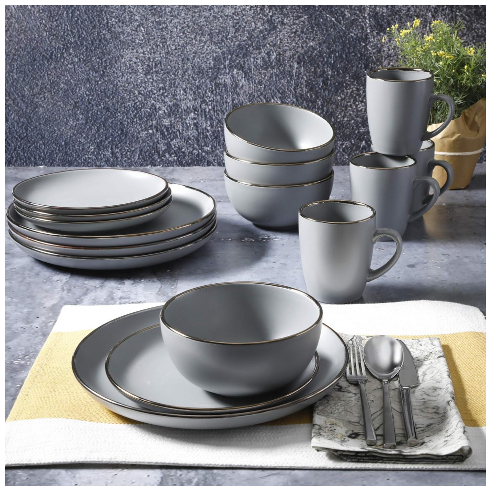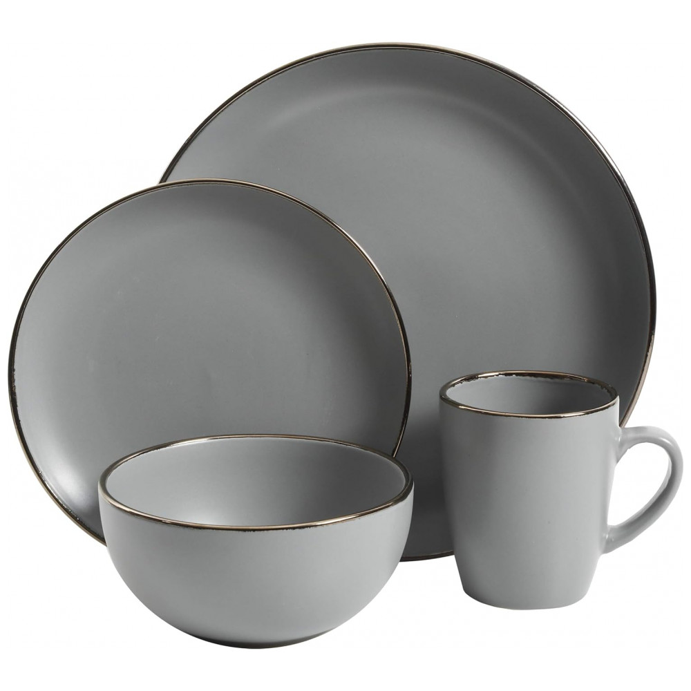 Aparelho de Jantar com 16 Peças em Cerâmica Stoneware Serve 4 Pessoas, Gibson Home Rockaway, Cinza