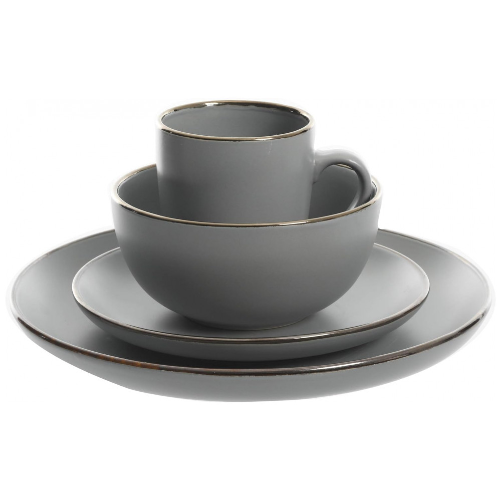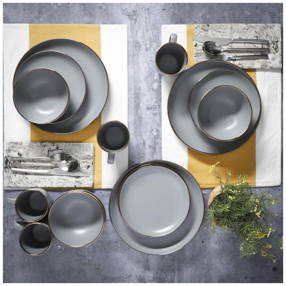 Aparelho de Jantar com 12 Peças em Cerâmica Serve 4 Pessoas, Gibson Home Rockaway, Cinza Matte
