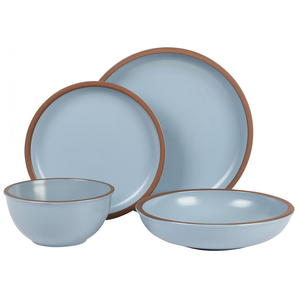 Aparelho de Jantar Coupe com 16 Peças em Terracota Serve 4 Pessoas, Gibson Elite Lagos, Azul Claro: O QUE ESTÁ NA CAIXA Serviço para 4 pessoas que inclui 4 de cada um dos seguintes Placas de jantar de 27 centímetros, Pratos de almoço de 21 centímetros, Tigelas de jantar de 22 centímetros e Tigelas de cereais de 16 centímetros INSTRUÇÕES DE CUIDADO pratos bonitos que também são lavadores de pratos e cofre de microondas TERRACOTTA , MATTE GLAZE um acabamento liso e plano, mergulhado em uma cor sólida bonita, cria uma adição elegante e artística à mesa.