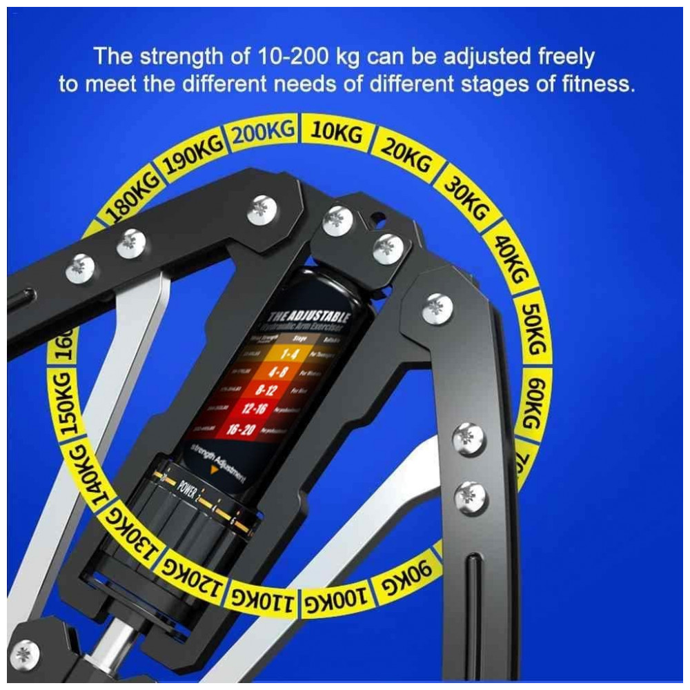 Aparelho de Musculação para Braço com Potência Hidráulica Ajustável de 9 a 200 kg, EAST MOUNT, Preto: Apenas girando o botão, a resistência pode ser ajustada, mais rápido do que o deslocamento do carro.