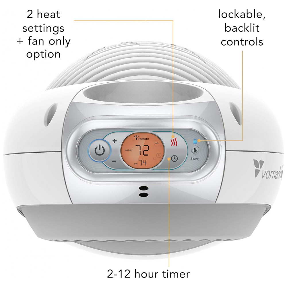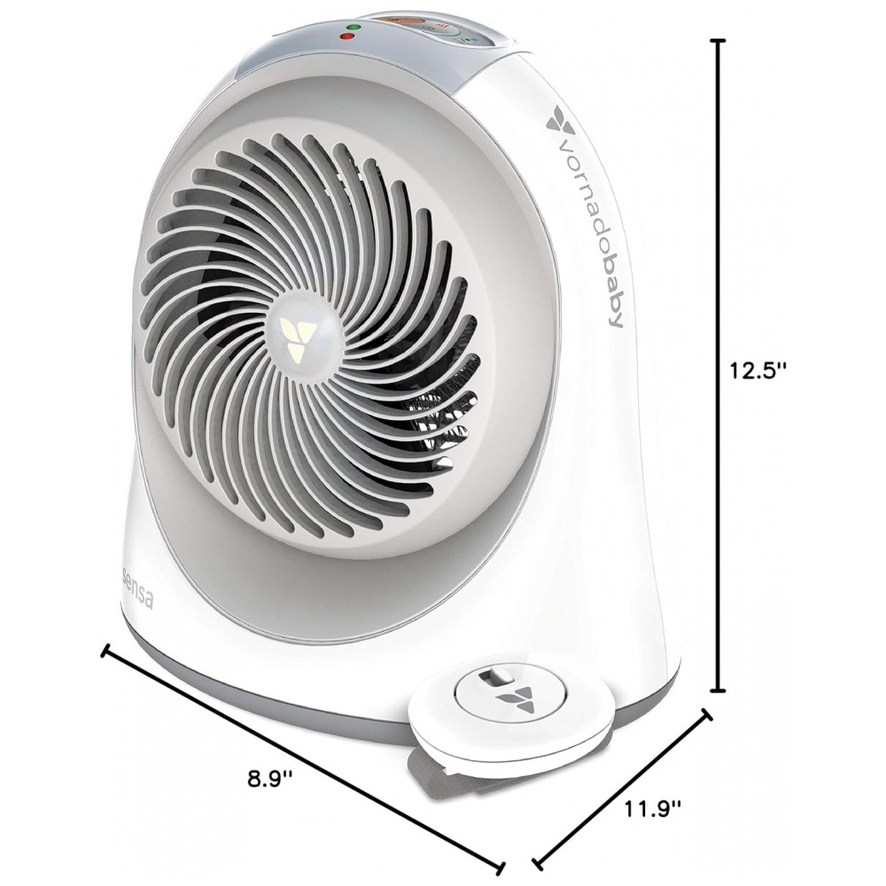 Aquecedor Elétrico para Bebês com Recursos de Segurança Avançados e Temporizador, 110v, VORNADOBABY Sensa, Branco: Apresentando o Aquecedor Sensa para Quarto de Bebê Projetado para Desempenho Excepcional Aquece suavemente e circula todo o ar ao redor do bebê com 2 configurações de calor, opção somente ventilador e timer de 2 a 12 horas.