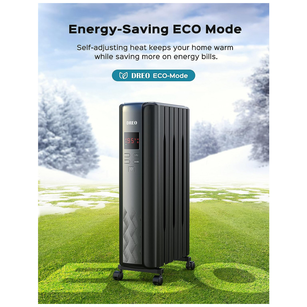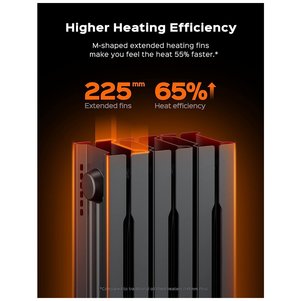 Aquecimento Rápido As aberturas em forma de fuso, 225 mm maiores do que as outras aletas aumentadas, e os tubos de aquecimento em forma de U dupla tornam o aquecedor de radiador a óleo Dreo tão eficaz na distribuição de calor que o calor pode ser duplicado e liberado rapidamente, de forma uniforme e eficiente para uma área grande ou para o ambiente inteiro.
