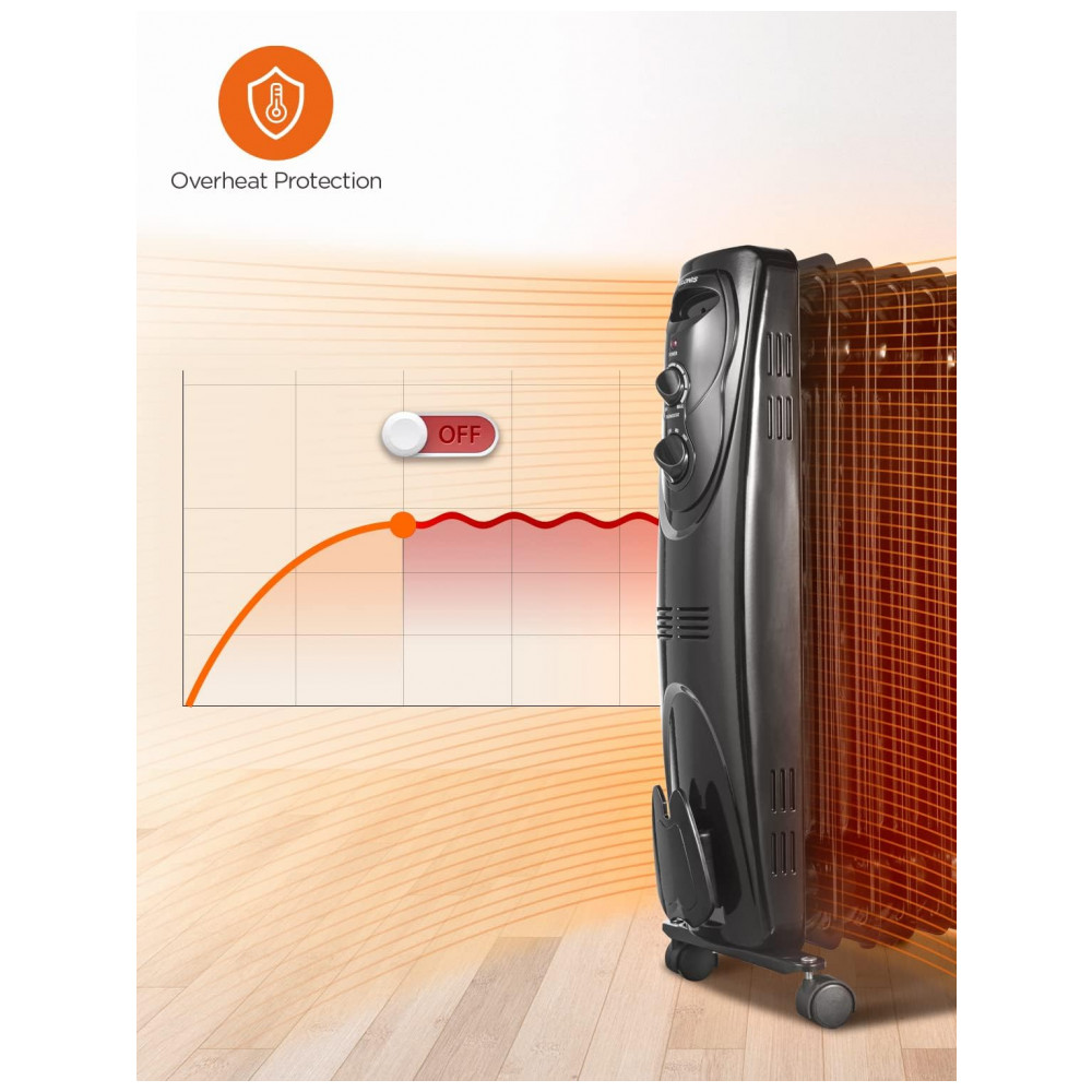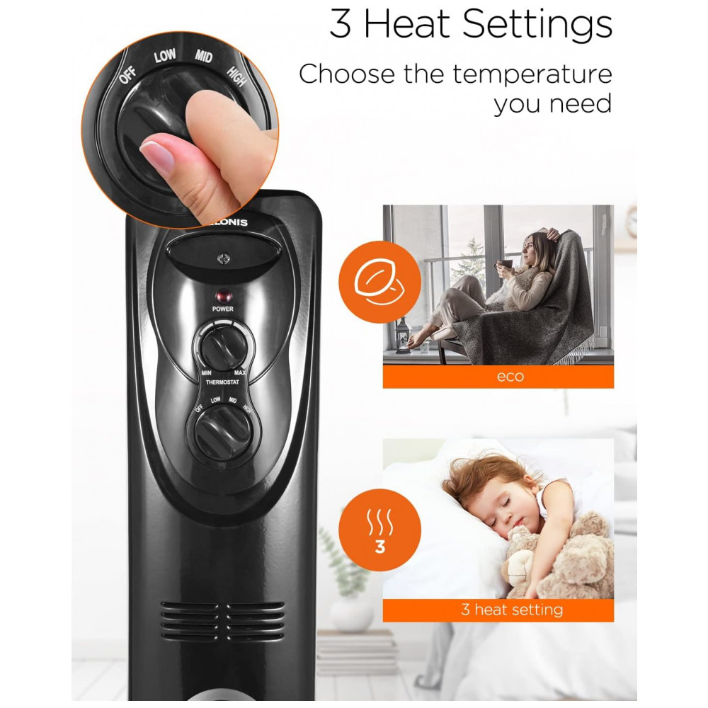 Aquecedor de Radiador a Óleo PELONIS para Uso Interno em Ambientes Grandes, Seguro com Termostato, 1500W, Eficiente em Energia, Silencioso, com 3 Configurações de Calor e Temporiza…