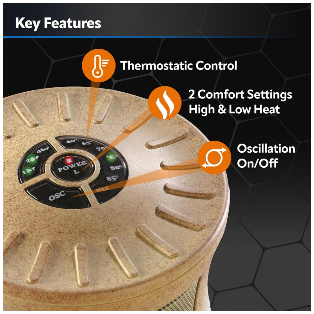 O termostato ajustável permite ajustar o elemento de aquecimento cerâmico de 1500 watts.