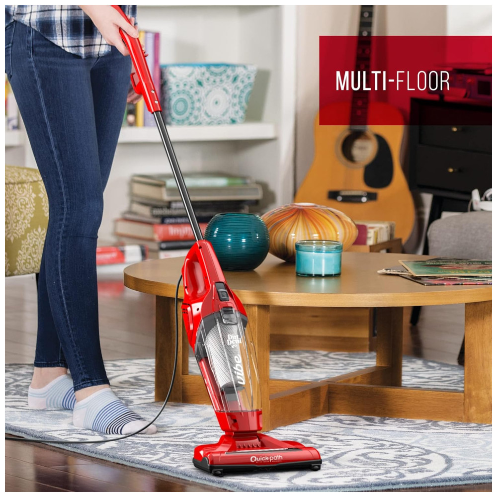 O aspirador de pó Dirt Devil Red Vibe 3 em 1 oferece conveniência e eficiência em um design leve e compacto, ideal para limpeza fácil de cômodo em cômodo e para subir e descer esca…