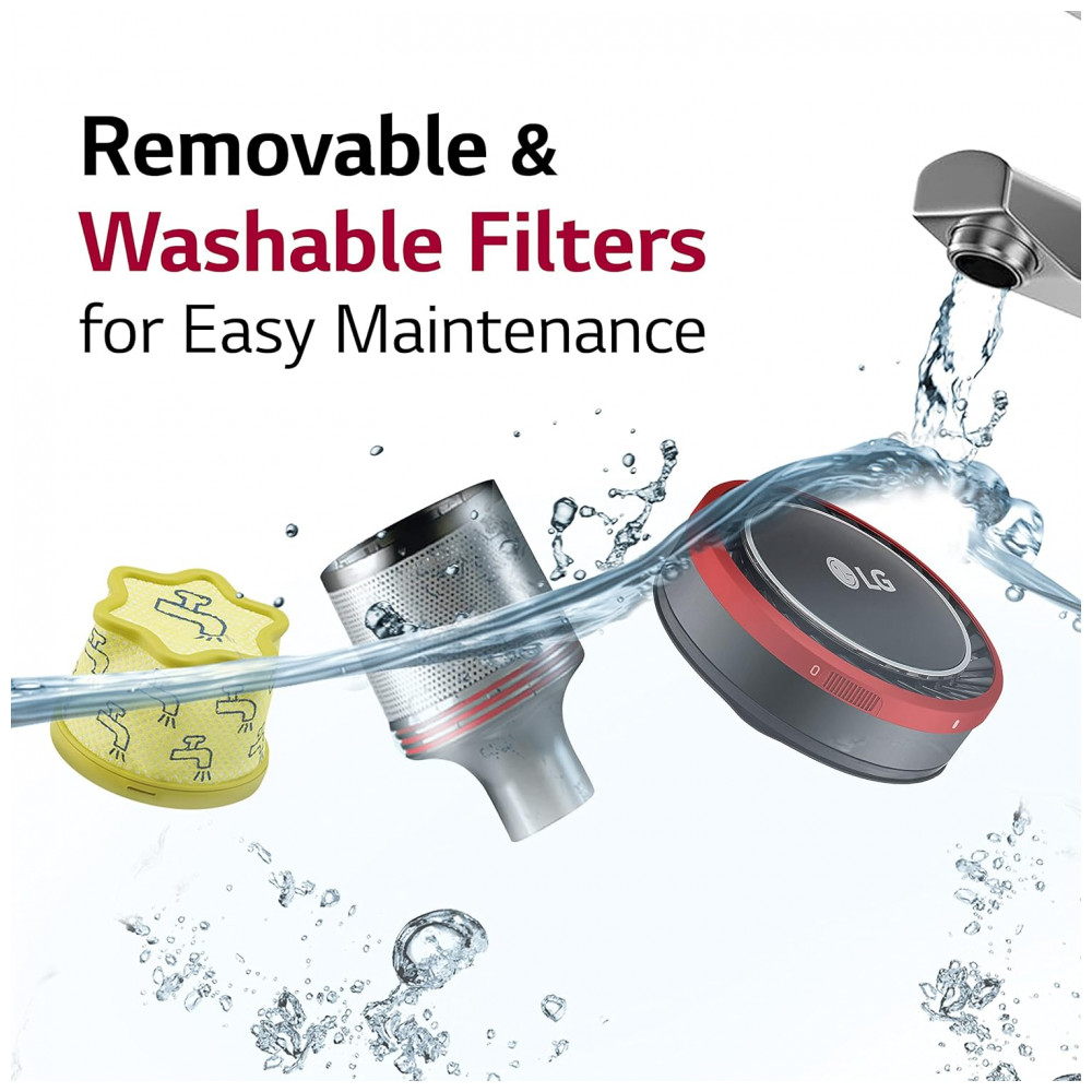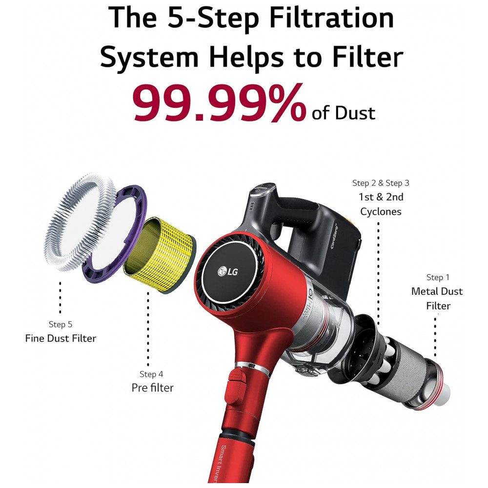 O aspirador de pó sem fio da LG é equipado com uma sucção poderosa e duas baterias recarregáveis e destacáveis de liberação rápida, permitindo que você limpe e carregue simultaneamente por até 80 minutos de desempenho contínuo.