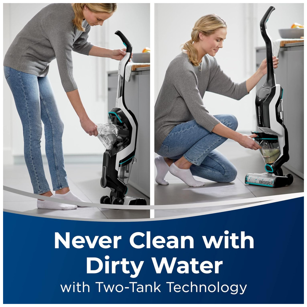O BISSELL oferece conveniência e eficiência incomparáveis, permitindo que você aspire e lave seus pisos simultaneamente, tudo sem fios.