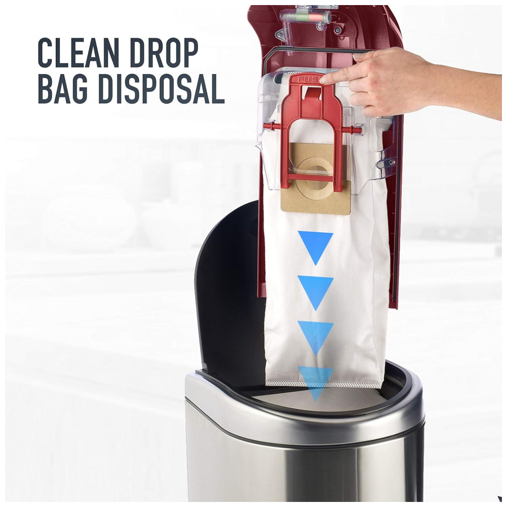 FILTRO HEPA Captura 99,7 da sujeira, poeira, pólen e alérgenos até 0,3 mícrons, e com um simples toque libera o saco de lixo, para que você nunca precise tocá lo.