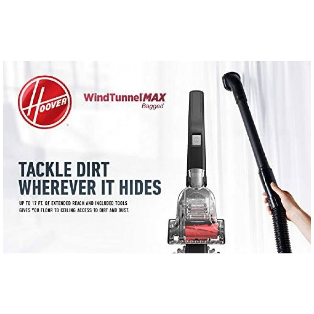 Descubra o Aspirador Vertical com Bolsa Hoover WindTunnel Max, com Tecnologia WindTunnel 3, Filtragem HEPA e Cabo de Alimentação de 2,78 m, UH30600, Vermelho TECNOLOGIA WINDTUNNEL…