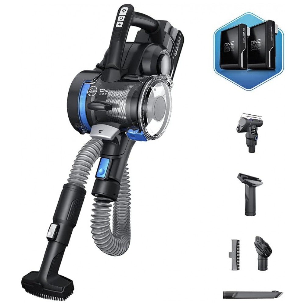 Inclui 2 baterias de íon de lítio ONEPWR de 4,0Ah e 1 carregador compacto, mangueira de extensão, ferramenta motorizada para pets, ferramenta flexível para frestas, escova para poeira, ferramenta para estofados e ferramenta para sujeiras difíceis.