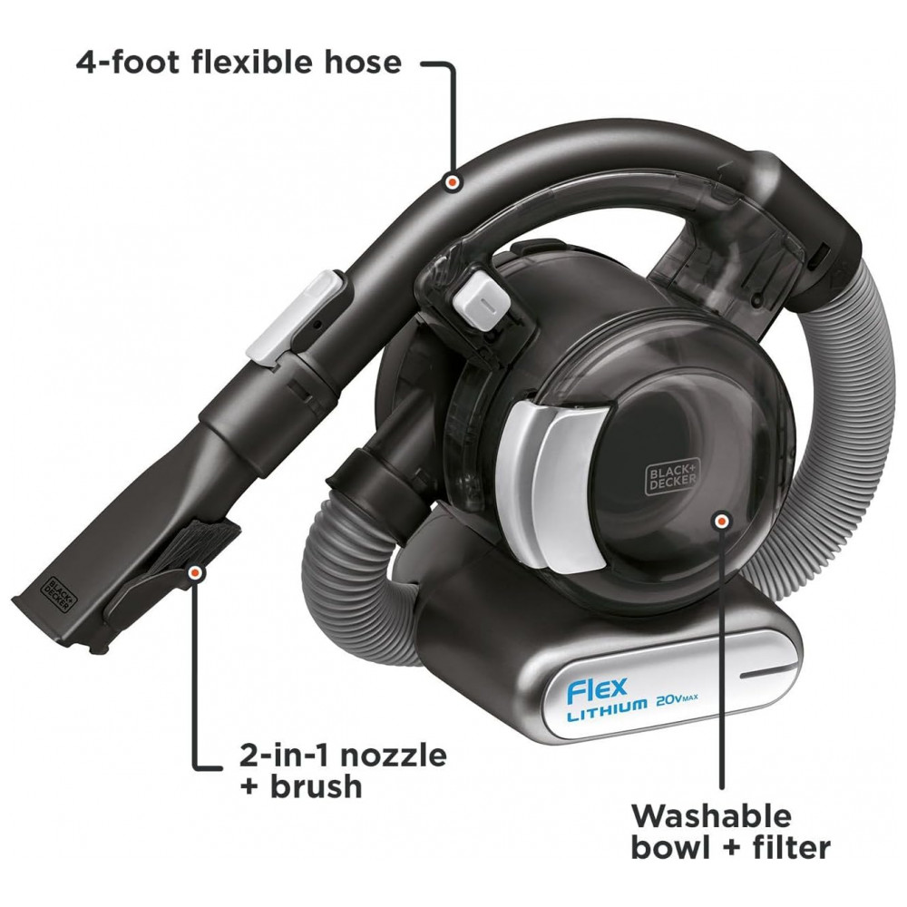 Aspirador de Pó Portátil Recarregável 20V, BLACKDECKER BDH2020FL, Preto