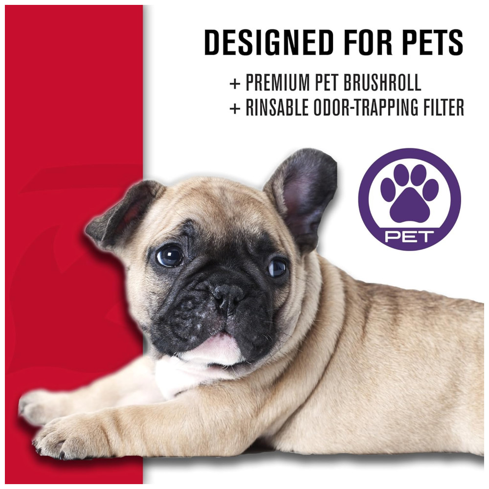 O rolo de escova premium para animais de estimação ajuda a enfrentar pelos profundamente incrustados, enquanto o filtro de carbono para animais de estimação ajuda a minimizar odores desagradáveis, mantendo o ar fresco em sua casa.