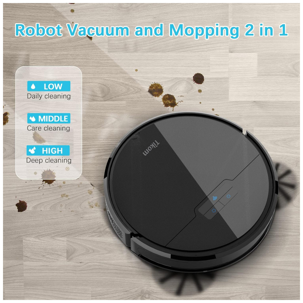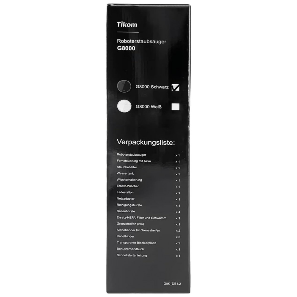 Aspirador de Pó Robô Inteligente e Automático 2700Pa com Auto Carga Ideal para Pets, 110v, TIKOM G8000, Preto: O aspirador de pó robô G8000 adota a mais nova tecnologia de limpeza, equipado com uma bomba de água controlada eletronicamente e saída de água ajustável de três níveis, você pode desfrutar de uma casa completamente limpa Os aspiradores robóticos G8000 limparão sua casa mais completamente seguindo um caminho eficiente em ziguezague, quando comparados aos aspiradores robóticos de caminho aleatório.