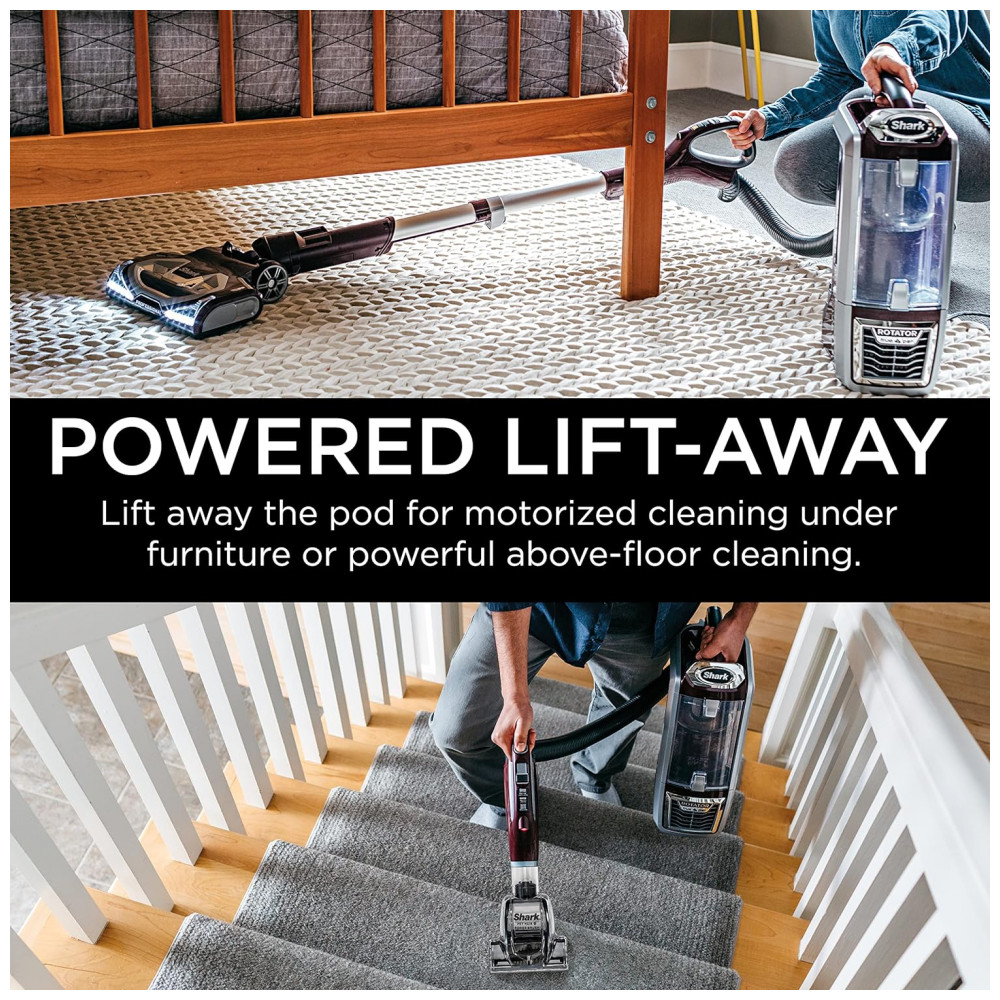 Tecnologia 2 em 1 Powered Lift Away Permite levantar a cápsula para limpar áreas de difícil acesso, como debaixo de móveis, enquanto o rolo de escova alimentado continua girando.