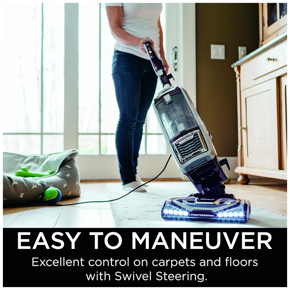 Direção Giratória Avançada Manobre facilmente o seu aspirador para entrar e sair de espaços apertados, cantos e ao redor de móveis.