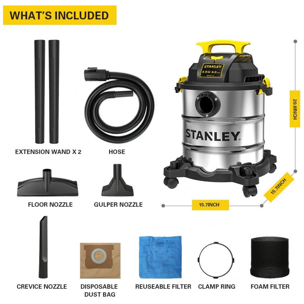 Invista no Aspirador Stanley SL18116 e transforme as tarefas de limpeza numa atividade simples, rápida e eficaz, garantindo um ambiente mais limpo e agradável com facilidade e conveniência.
