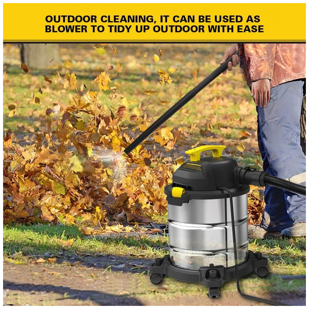 Este aspirador é perfeito para lidar com qualquer tipo de sujeira, seja seca ou molhada, em locais como garagens, oficinas ou porões.