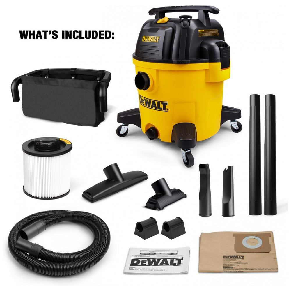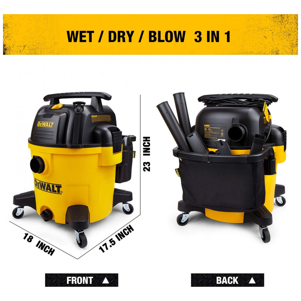 Aspirador de Pó Seco e Úmido 37L, 4.5CV de Potência com Extensores, 110v, DEWALT DXV10P, Amarelo: