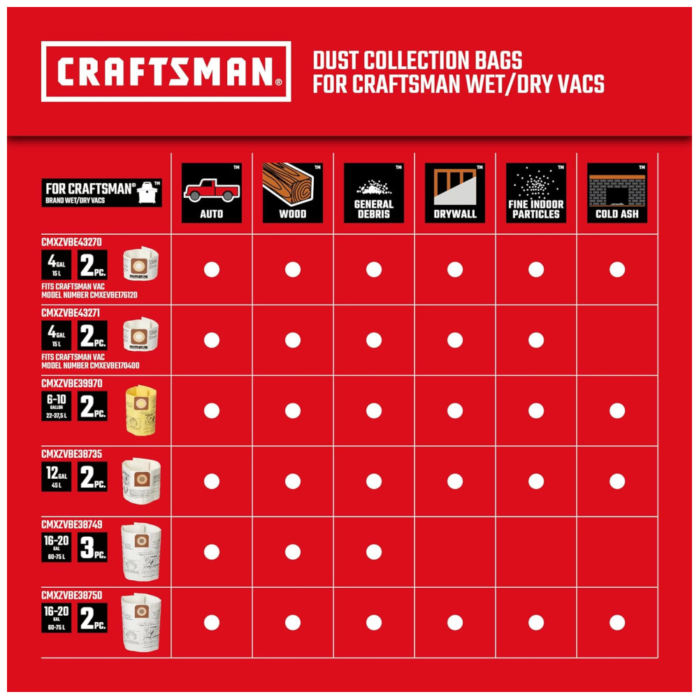 Compatibilidade com Filtros e Sacos de Pó Originais CRAFTSMAN Utilize filtros e sacos de pó originais CRAFTSMAN para manter a eficiência e prolongar a vida útil do seu aspirador.
