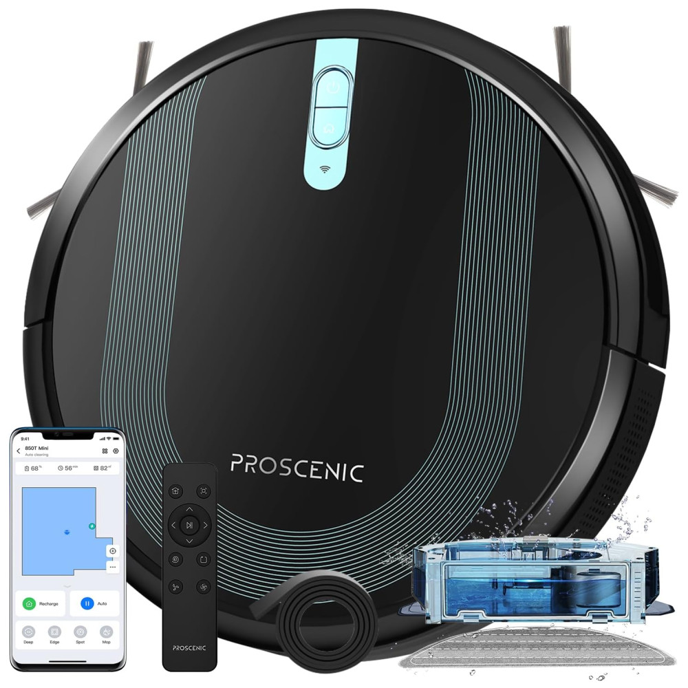 Aspirador Robô e Esfregão com Controle por App e Navegação Giroscópica, 110V, Proscenic 850T, Preto
