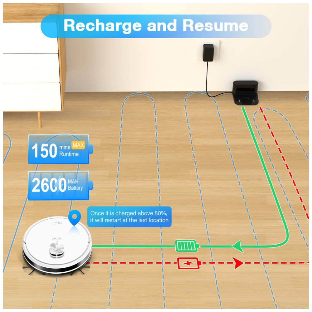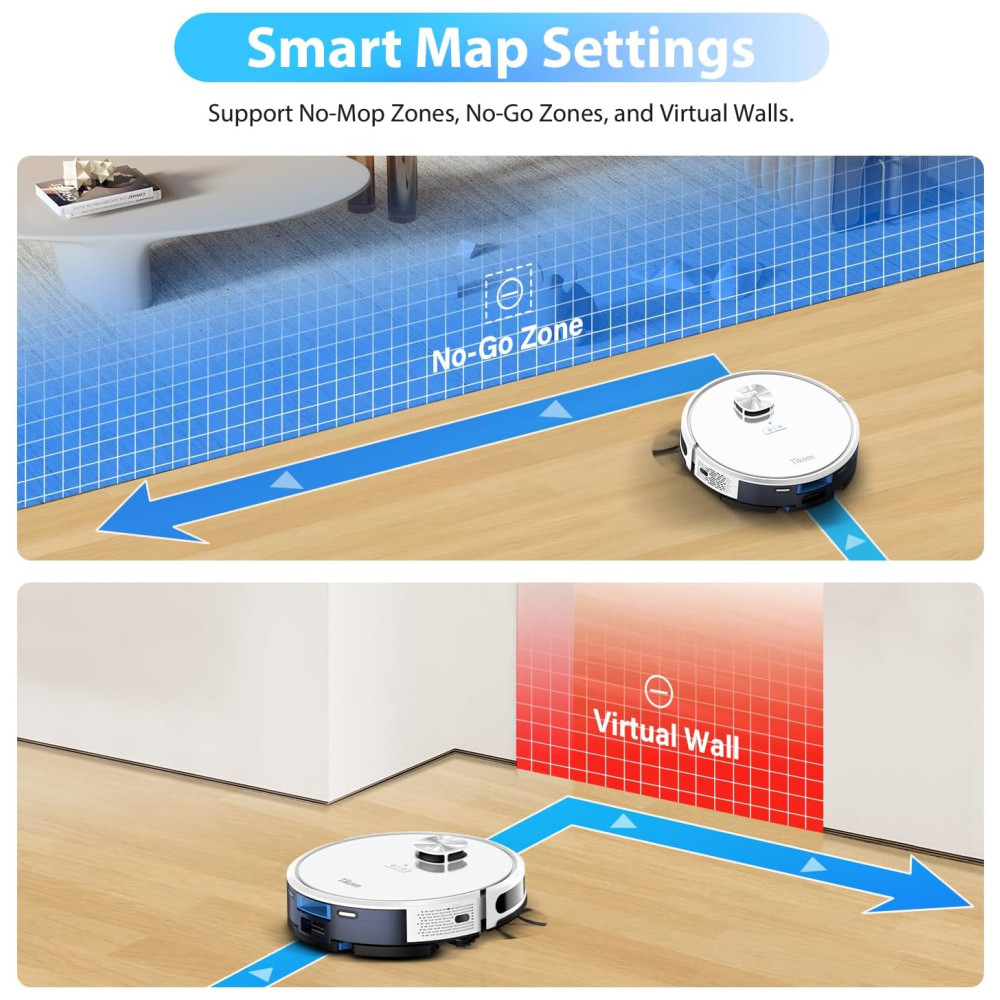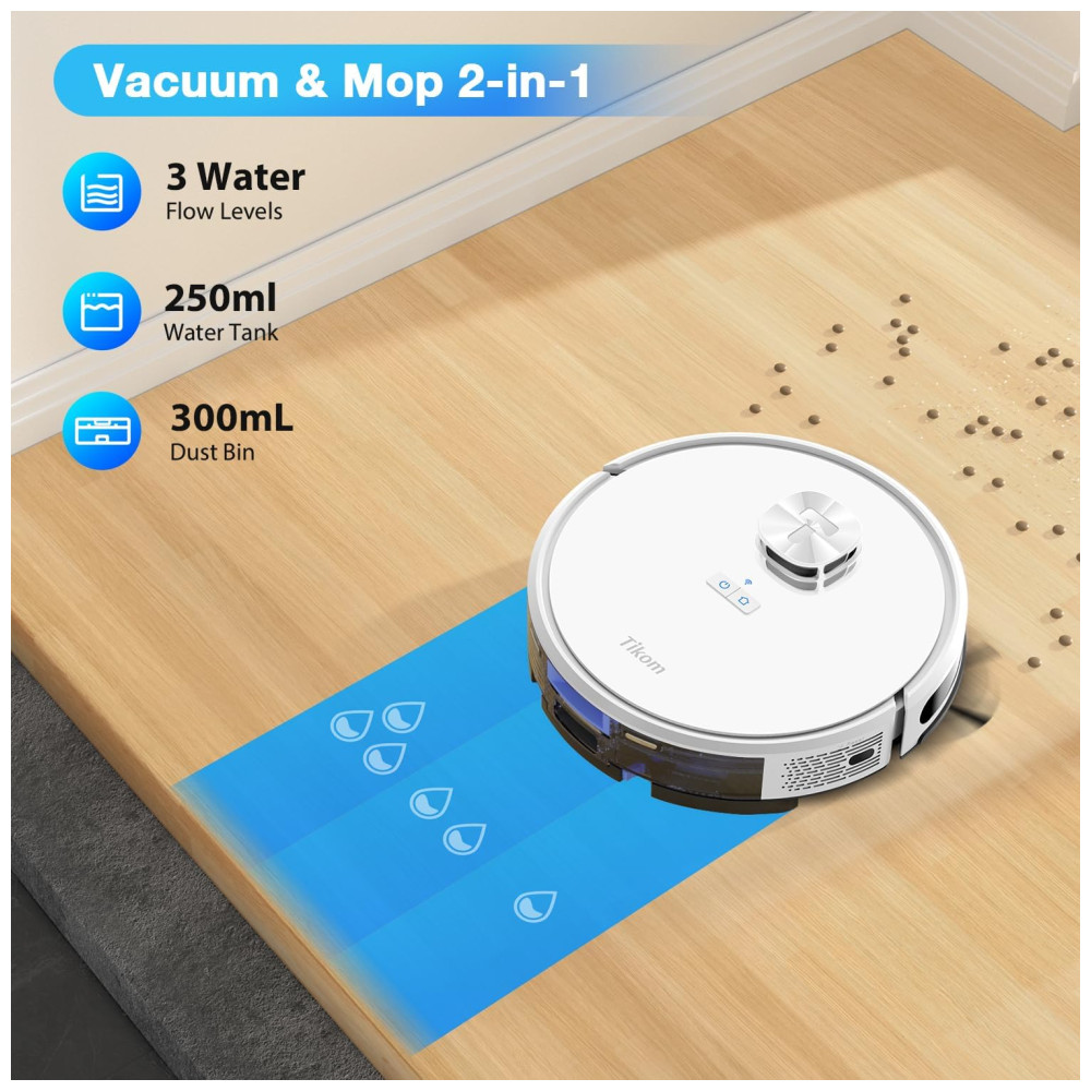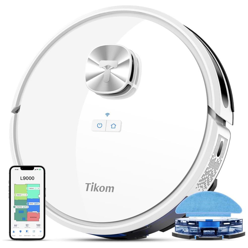 O robô aspirador Tikom L9000 é equipado com a tecnologia de navegação LiDAR, que cria mapas precisos, permitindo que ele salve até 5 mapas. Isso permite que você personalize o cron…