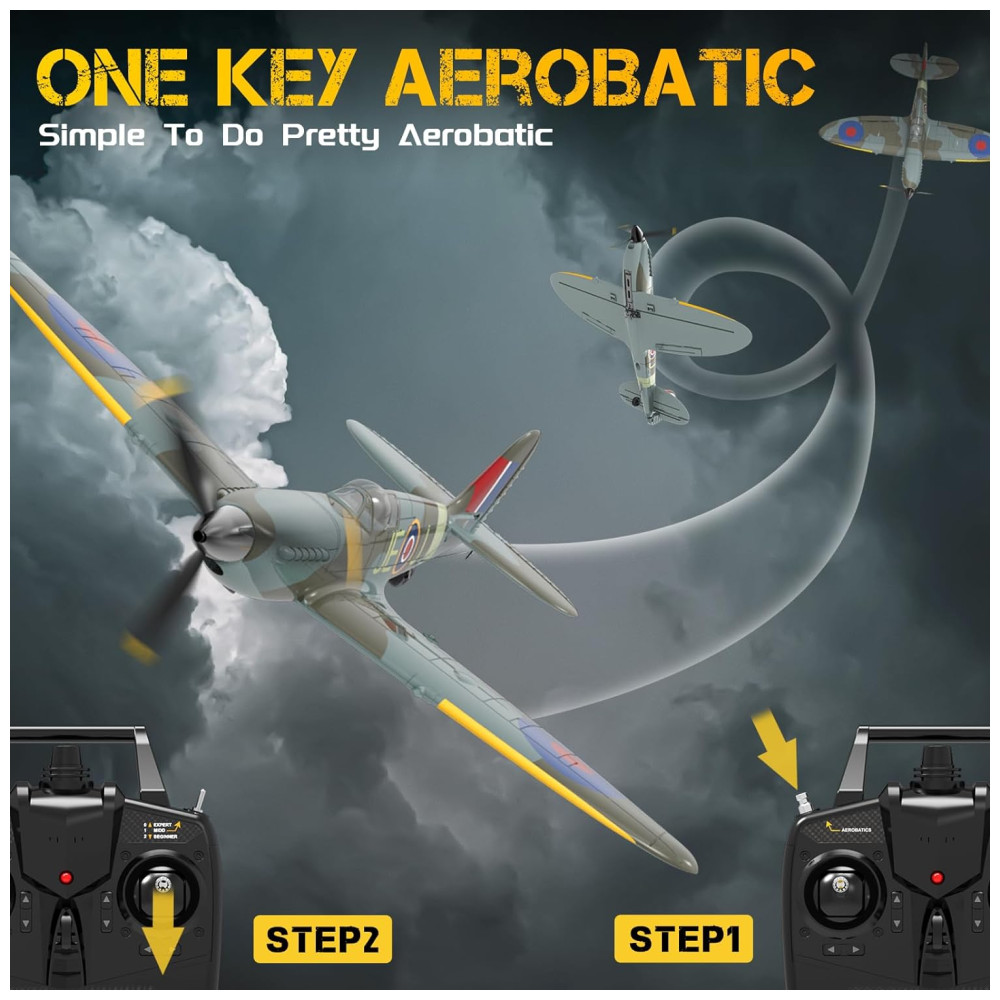 Avião de Controle Remoto 4 Canias com Sistema de Estabilização Xpilot e Acrobacias, CKYSCHN Spitfire V2 RC, Verde