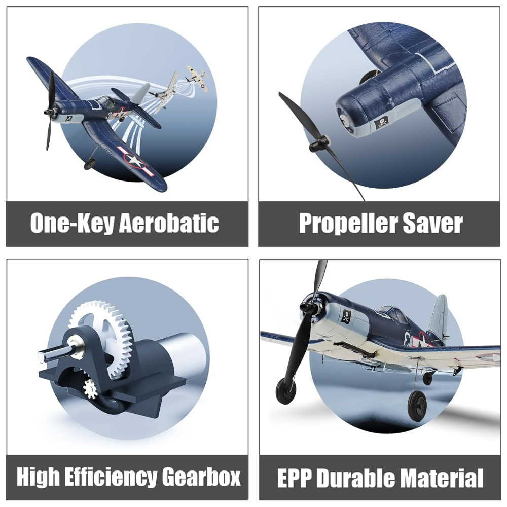Avião de Controle Remoto com Acessórios, Sistema de Estabilização Xpilot e One Key Acrobático, RoofWorld F4u Corsário 76108, Azul Escuro