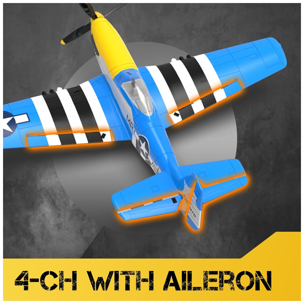 Avião de Controle Remoto com Sistema de Estabilização Xpilot, Acrobáticas e Giroscópio 6 Eixos de 2,4 GHz, CKYSCHN Mustang V2, Azul: Os aviões rc VOLANTEXRC de 4 canais vêm com estabilizador giroscópio Xpilot e poderoso sistema de motor redutor, muito amigáveis também para iniciantes.