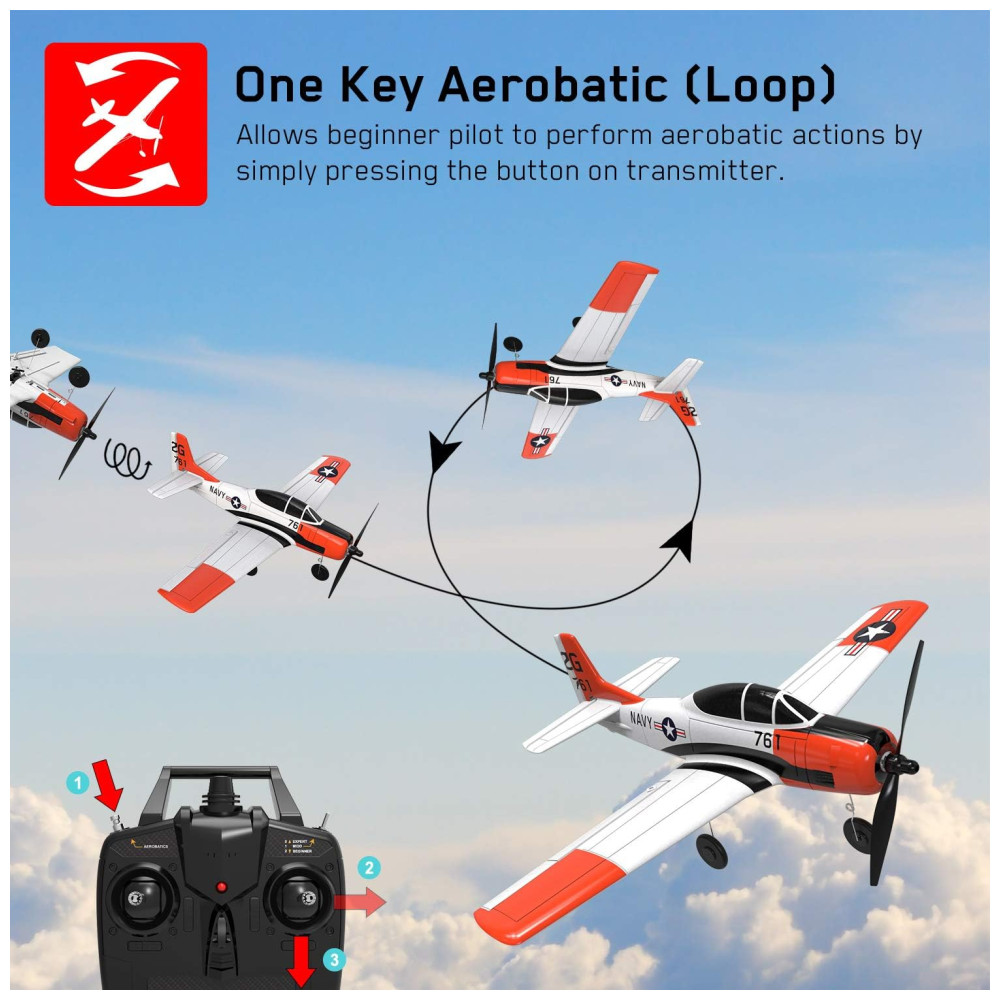 Avião de Controle Remoto com Sistema de Estabilização Xpilot e Acrobáticas, VOLANTEXRC T28 Trojan, Vermelho e Branco