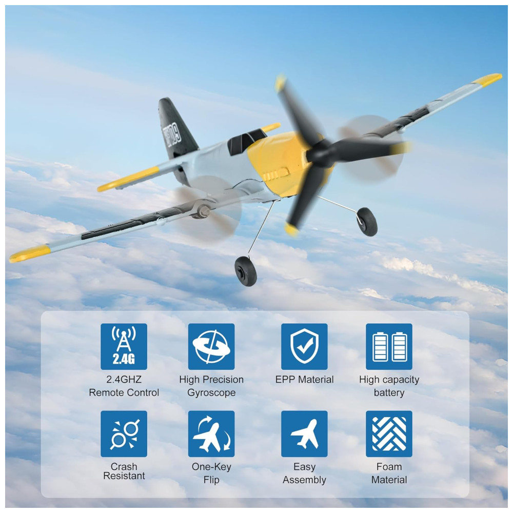 Avião de Controle Remoto com Sistema de Estabilização Xpilot e Giroscópio 6 Eixos de 2,4 GHz, OMNANGO BF109, Amarelo e Azul: Avião RC para Pilotos de Todas as Idades Material Durável e Seguro Construído com espuma EPP qualificada e componentes eletrônicos.