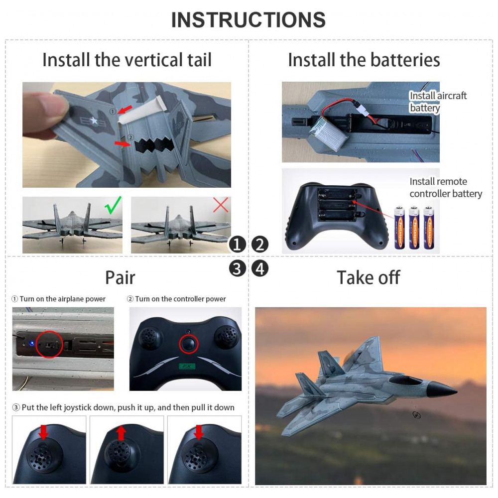 Avião de Controle Remoto F22, 2.4 Ghz 2CH com Função Planador, HAWKS WORK 822, Azul: PRONTO E FÁCIL DE VOAR Sistema de auto estabilização integrado, este avião RC é fácil de voar.