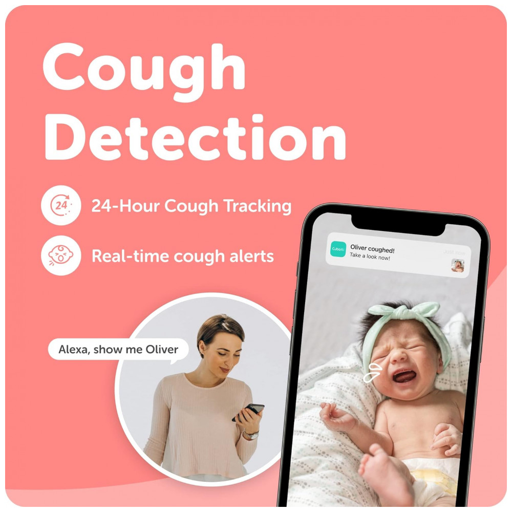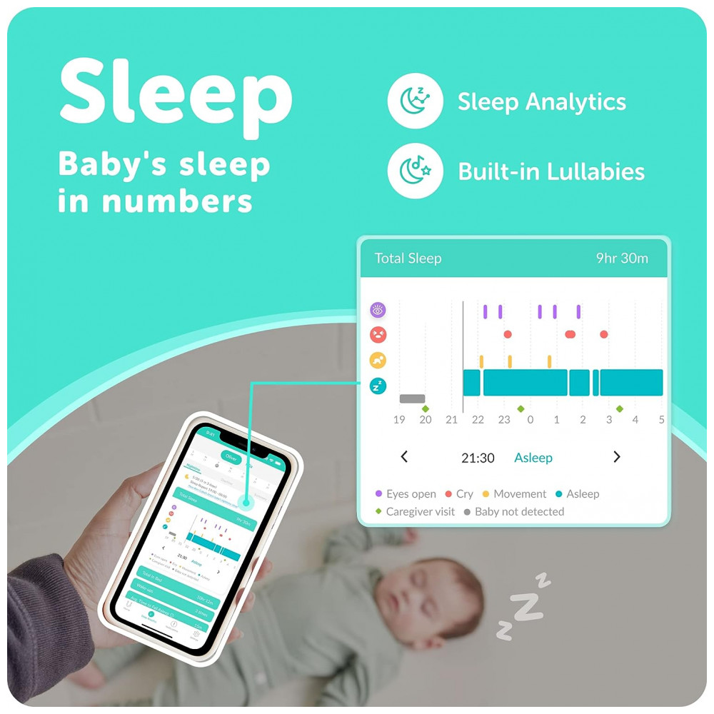 Babá Eletrônica Monitor Câmera HD com Vião Noturna, Análise de Sono com Áudio Bidirecional compatível com Android e IOS, CUBO AI, Branco
