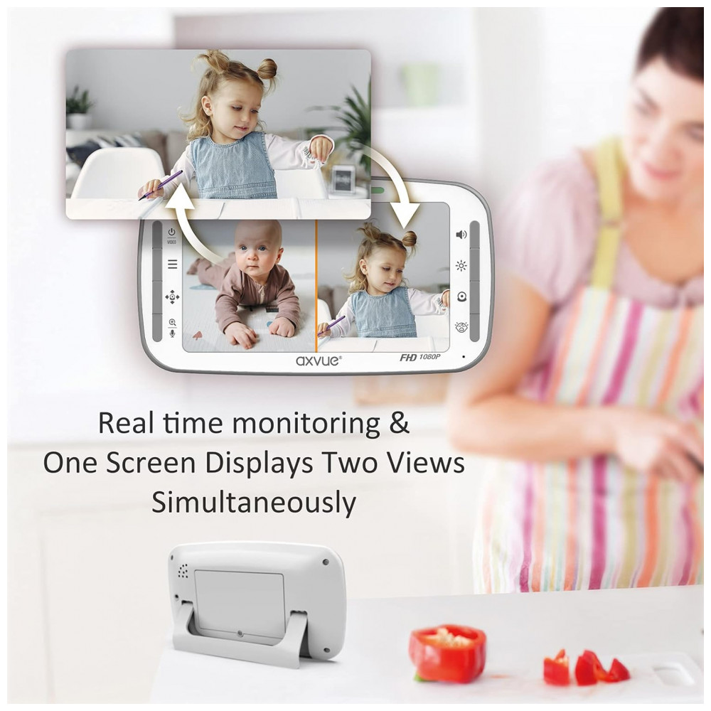 Babá Eletrônica Monitor com Câmera de 12cm HD 1080p 24H de Bateria Alcance de 304M, AXVUE A1080P, Branco: IMAGENS DE CRISTAL E NÍTIDAS EM TEMPO REAL Equipado com tela de alta definição HD de e câmeras HD.