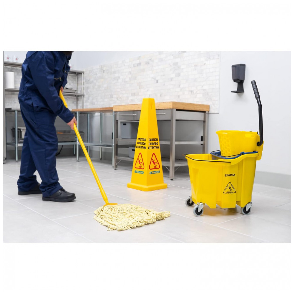 Balde Profissional 35 Litros com Espremedor Lateral Carlisle Amarela: Confira a mais recente tecnologia de limpeza de pisos da Sparta Melhoramos o balde industrial de esfregona adicionando quebra de vigília e abaixando o centro de gravidade para que não tombe e derrame quando estiver cheio.