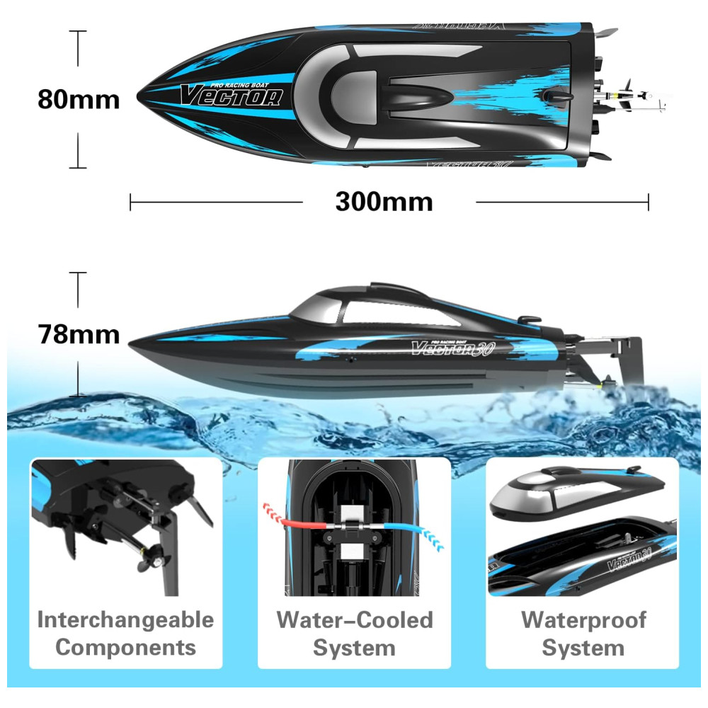 PRESENTES PERFEITOS PARA MENINOS E MENINAS O barco RC de alta velocidade Vector XS é fácil e divertido para crianças e adultos, e é um dos barcos de controle remoto de água doce mais difíceis e rápidos para crianças a partir de 14 anos.