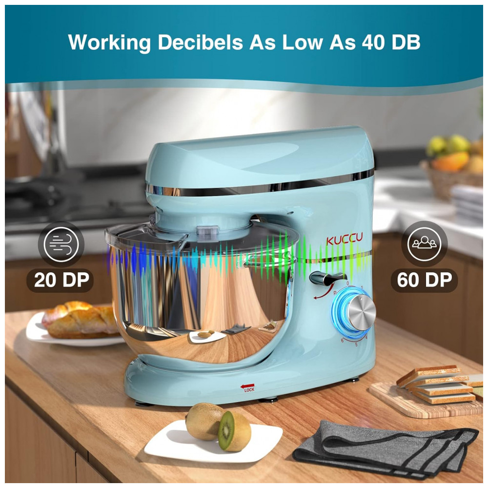 Batedeira de Bancada 6L com 6 Velocidades, Aço Inoxidável, 660W, 110v, KUCCU, Azul