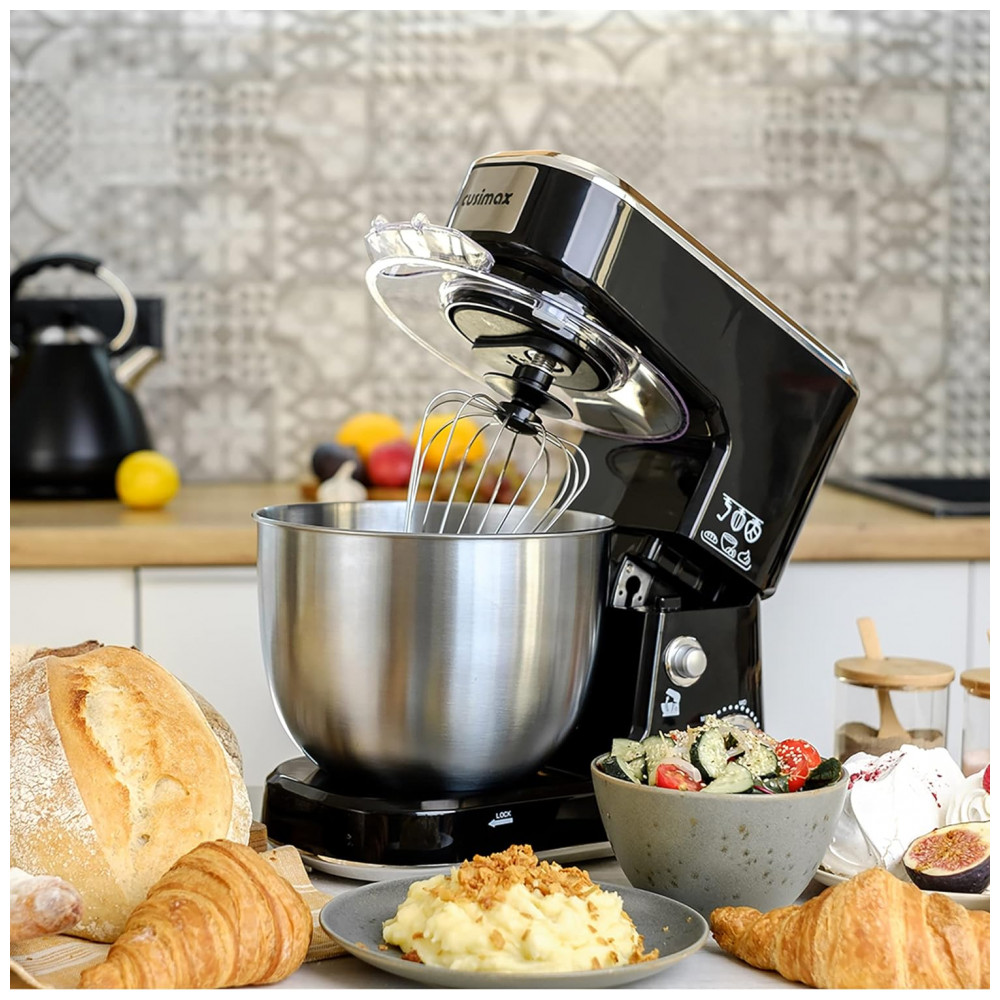 Acessório múltiplo a batedeira CUSIMAX vem com três acessórios de mistura batedor, gancho de massa e batedeira, que são facilmente fixados ao eixo, adicionando versatilidade de mistura ao cozimento.